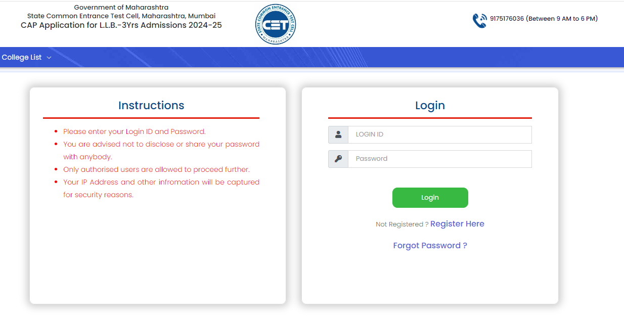 The MH CET 2024 3-year LLB round 1 seat allotment results be declared on August 12, 2024. Aspirants need to report to their assigned colleges between August 13 to 16. The colleges will upload the admitted candidates on the portal. The aspirants can click here to get redirected to the candidate login page to proceed with their choice-filling process.